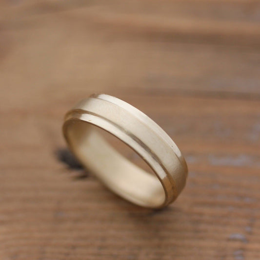 14k Yellow Gold Men's Wedding Band, Slate Band RIng in Solid Recycled Gold