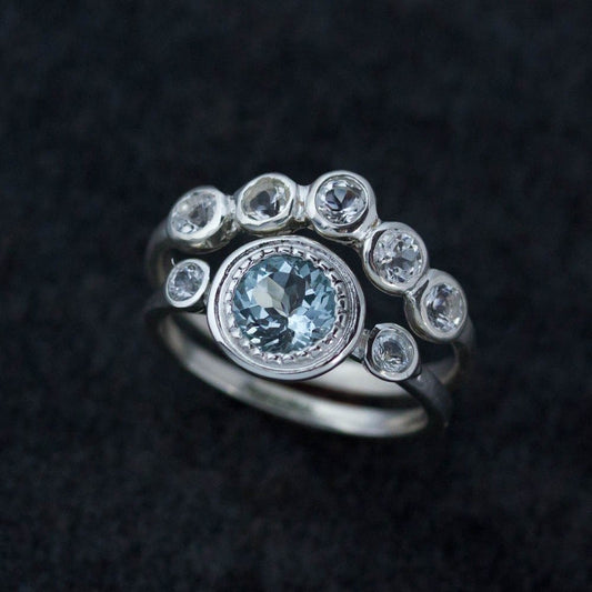 Aquamarine Anniversary Band Ring in Sterling Silver
