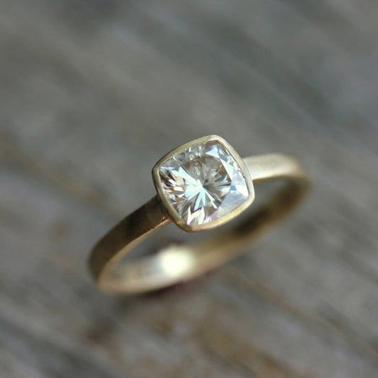 6mm Cushion shaped Aquamarine Engagement Ring in Yellow Gold