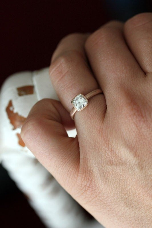 6mm Cushion shaped Aquamarine Wedding Set in 14k rose gold