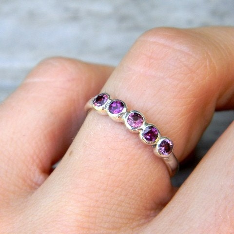 Pink Garnet Anniversary Band, Gemstone Wedding Band, Personalized Birthstone Anniversary Present, Mother's Day Gift in Shiny Silver Band