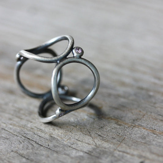 Pink Sapphire and Sterling Ring, Recycled Sterling Wide Band Ring