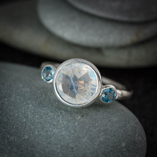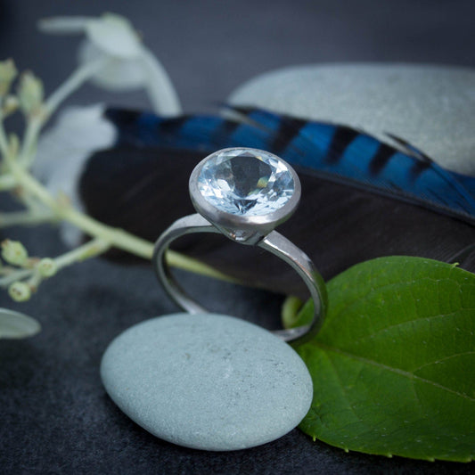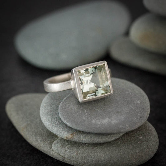 Radiant London Blue Topaz Ring, Radiant Cut Solitaire Gemstone Ring in Argentium Silver, Bezel Set Wide Band Ring