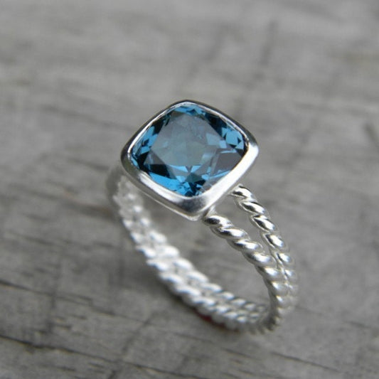 Silver London Blue Topaz Split Shank Ring