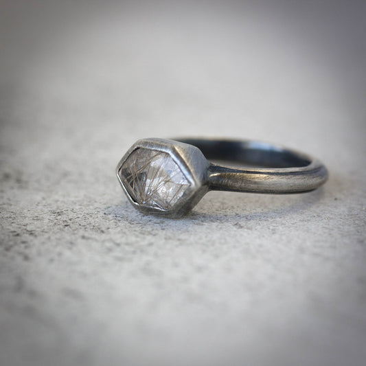 Rutilated Quartz Statement Ring with Antique Brushed Finish