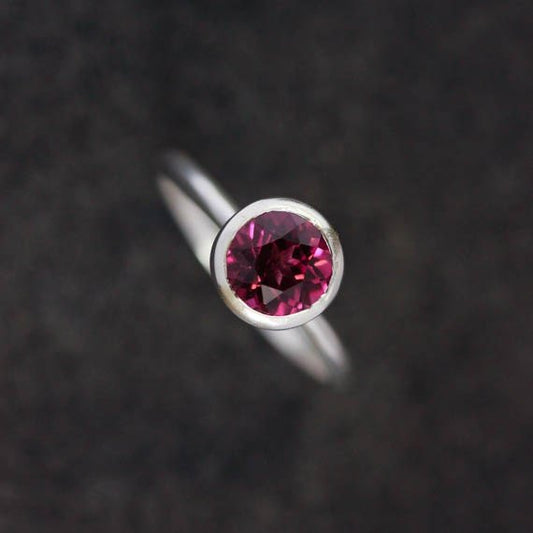 Round Garnet Gold Ring Bezel Set
