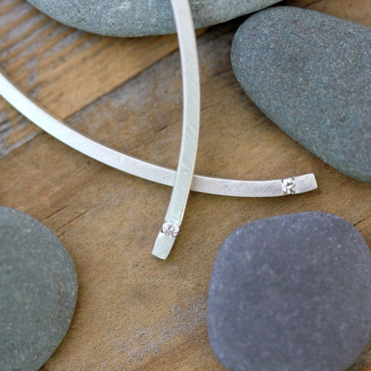 Silver Diamond Dangle Earrings