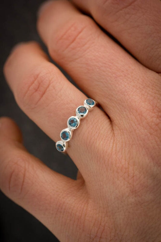London Blue Topaz Birthstone Stack Rings, Guard Band Ring Collection
