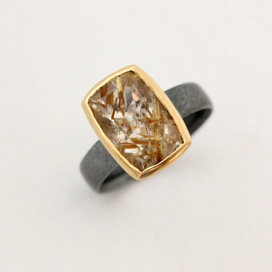 Mixed Metal Rutilated Quartz Cocktail Ring