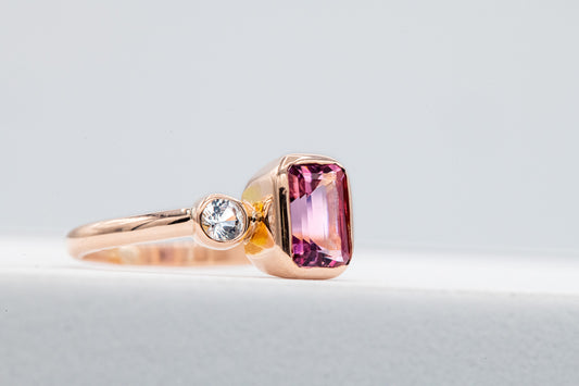 Pink Tourmaline and White Sapphire Ring | 14k Rose Gold Tourmaline Ring