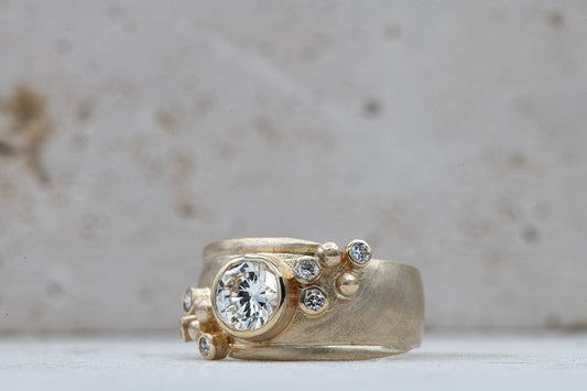 Wide Forever One Moissanite Gold Ring, Wide Gold Engagement Ring, Moissanite Cluster Ring, Chunky Engagement Ring