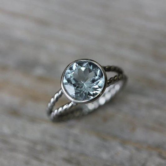 Round Aquamarine in 14k White Gold Split Shank Ring