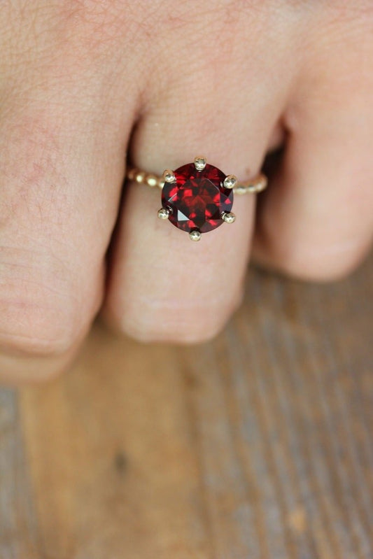 Crimson Red Garnet Ring and Recycled Gold Ring