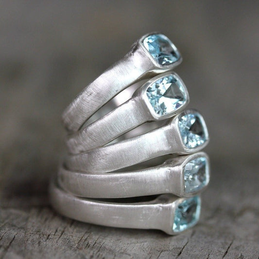 Cushion Cut Aquamarine And Sterling Silver Ring