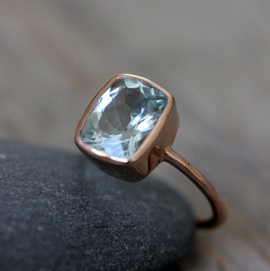 Pale Blue Cushion Cut Aquamarine Gold Ring