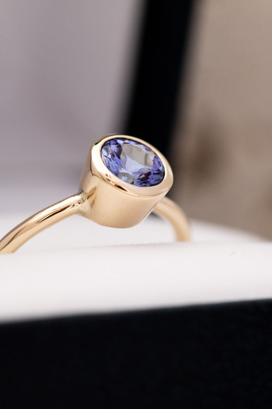 Demantoid Garnet 14k Yellow Gold and Half Bezel Ring