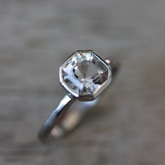Asscher Cut Ruby Ring Solitaire Gemstone