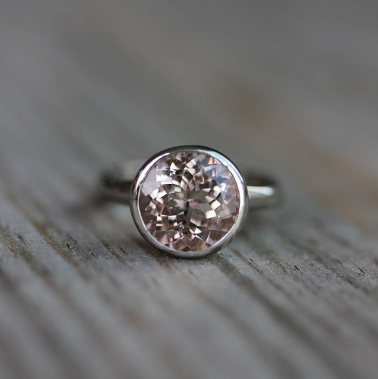 Cushion Morganite Ring in Handmade Palladium 14k White Gold