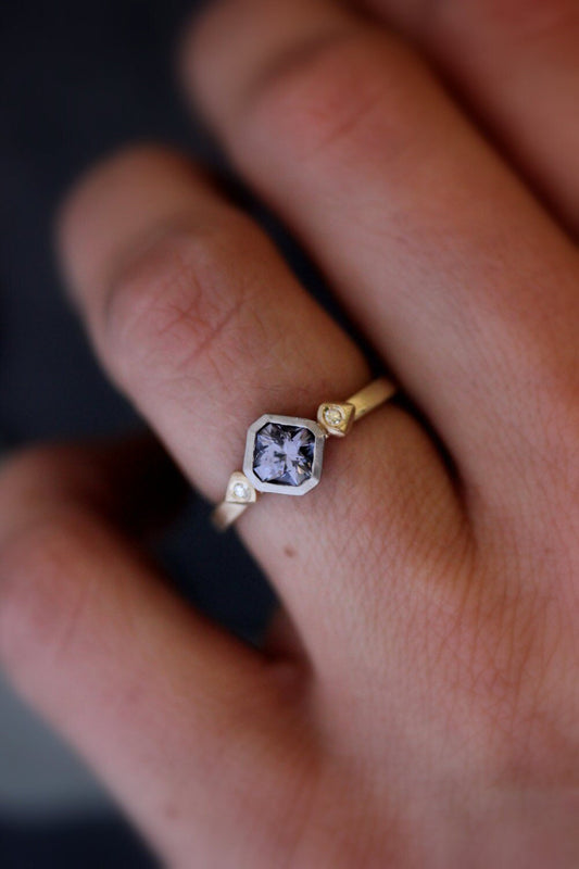 Blue Spinel & White Moisannite Mixed Metal Engagement Ring