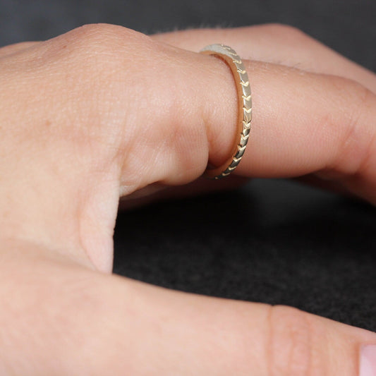 Recycled Gold Chevron Stacking Band 1.5mm Thin Gold Band