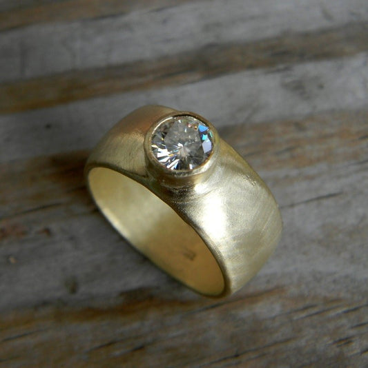 Chunky Gold Engagement Ring, Round Moissanite Wide Band Ring, Thick Band Engagement Ring